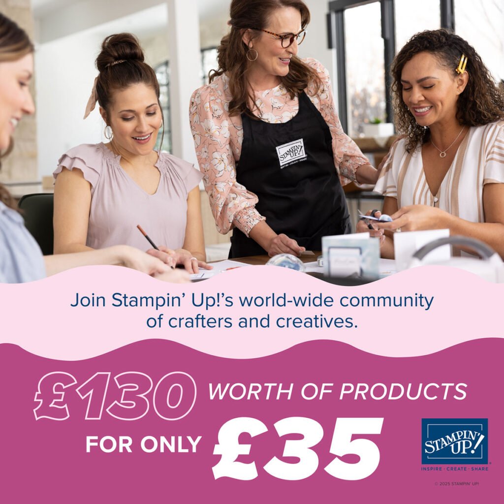 Join Stampin Up with me HERE to get £130 worth of product for just £35 in october 2025, and join my crafty community! or £194 worth of product for £99. an absolutely amazing kit price!